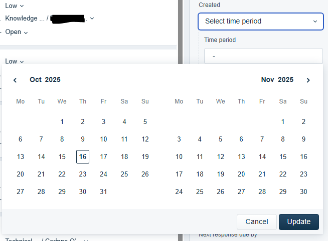 You can filter tickets for single or multiple criteria over a set or custom date range. After you select the filters the tickets within range will automatically appear. In order to apply a new filter you will need to clear all filters that are currently applied.