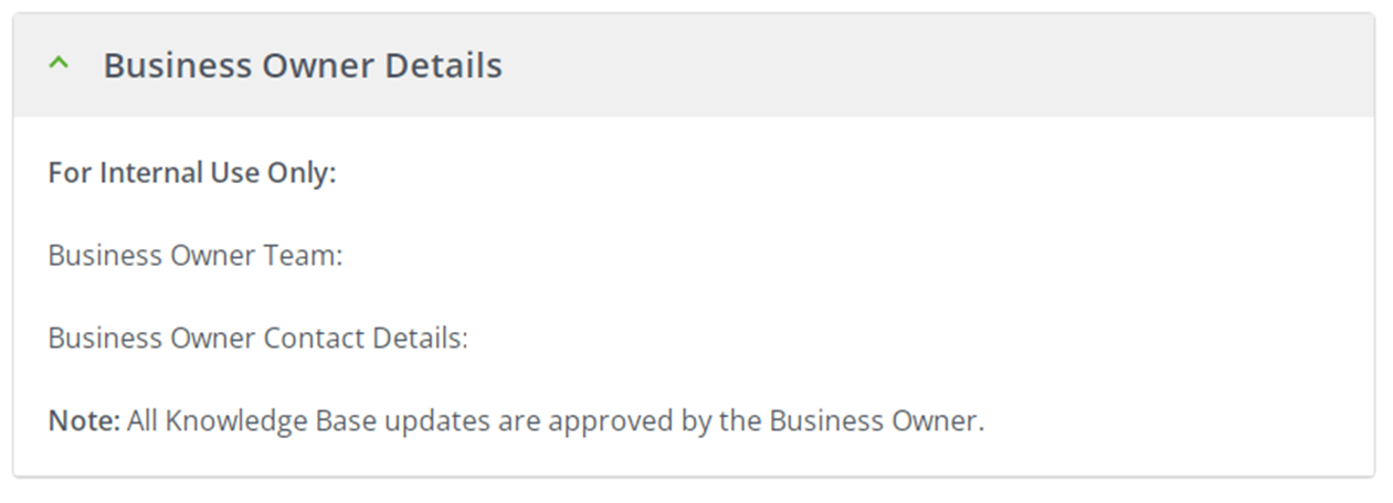 Every article requires a Business Owner to be added to the Knowledge Base.